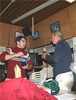 Behalve de gebruikelijke goede adviezen, het logboek en de pet kregen we dit keer niet alleen een fotocamera mee, maar ook een GSM/GPS-unit met een rood en een groen knopje.