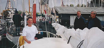 In de sluis praat ik met Henk van de Batavus. Naast mij maakt een Duits jacht vast, met vijf stormvast ingepakte en gezekerde opvarenden, die geïnteresseerd vragen aan welke wedstrijd ik heb meegedaan. Als ik vertel dat die net begonnen is, kijken ze wat bevreemd naar mijn outfit van katoenen broek en lamswollen trui, die in hun ogen geschikter is om te tuinieren dan om mee te zeilen.