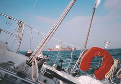 Het jacht dat achter me voer, heeft me bij het kruisen van de shipping lane ingehaald.