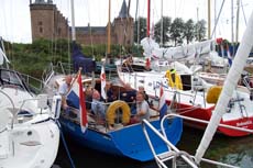 Bakker: ‘Geen gesjoemel, dus’. In geval van nood dient de zender als communicatiemiddel.Om ervoor te zorgen, dat de schippers niet kapotzeilen, moeten ze minimaal 27 uren rusten onderweg. In ieder geval drie periodes van zes uur, waarvan een ankerperiode. Bakker verwacht dat de deelnemers tussen zaterdag- en zondagochtend aankomen. Wie zondag na 12 uur arriveert, telt niet meer mee in het klassement.Muiden, haven, zeiltocht start woensdag 7-10 uur, zie ook www.200myls.nl, op deze zijn ook de verrichtingen van de zeilers te volgen tijdens de race.
