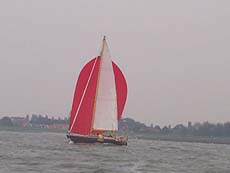 Al spinakerend wordt ik vriendelijk doch dringend verzocht, met ingang van nu mijn koers met 90° te verleggen om zo’n leiding de vrije doorgang te verlenen. Mijn : “Dan moet je wel NU aan de kant”, was iets minder vriendelijk, dan bedoeld, maar minstens zo dringend als hun verzoek.