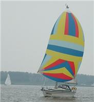 - Waar is de M1. Ik kijk op de GPS. Die moet vlak voor me liggen. Ik zie een aantal boten onder zeil, op de motor en onder vol tuig met spi, maar ik zie geen boei. Ah daar is ze, een spi schuift vlak voor langs me heen. Net zo als in een spookfilm. Die schijnt dus te zijn gestart.