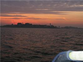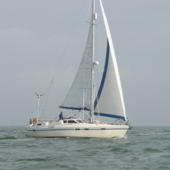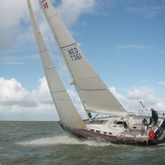 Op naar het laatste rak!Om 13.20 het anker op en op naar de OVD-3, daar waren wij om 13.53 uur en nu moest er gekruist worden naar de Sport–E. Deze lag op dat moment recht in de wind en ik zag er erg tegen op omdat mijn bootje met zijn ondiepe kiel (130 cm) en aan lagerwal flink door de hoge golven wordt weg gezet. Maar ik wilde deze avond beslist finishen om dat in de avond de wind het weer zou laten afweten. Wel 12 myl, komaan de laatste loodjes wegen het zwaarst zeggen ze wel eens. Ik kreeg na de start de boot niet aan het lopen en ik piekerde mij suf waardoor dat kwam. Ik had een rif gezet in het grootzeil en de reefbaarrolgenua een stuk in gerold na ongeveer 7 a 8 minuten aanklooien viel het kwartje! De traveller naar buiten en hup dat scheelde! Ook had ik teveel voorzeil, toen dat allemaal was verholpen ging de boot lopen!!Wel ik heb de volgende tactiek bedacht! Waren er geen buien dan zakte de wind in tot zo’n 10 a 12 knopen, dan moest het voorzeil weer uitgerold worden. Ik ging dan over bakboord richting het zuiden. Kwam er een bui en daar zat iedere keer veel wind in (25 knots), ging ik overstag naar stuurboord en rolde tijdens het overstag gaan het voorzeil een stuk in. Dat liep als de brandweer en ik nam gelijk de grote windshifts mee, zo’n 20 tot 30°. Het was wel keihard werken maar wil je snel varen is dit voor mij de enigste optie!Om 17.32 ronde wij de Sport-E en gingen met halve wind richting Volendam. Soms liep de boot 8.5 knopen en met 6.5 knoop vlogen wij langs de GZ om 18.32 uur richting de Pampus 9 ,de finish boei.