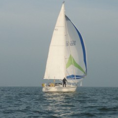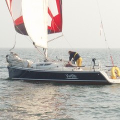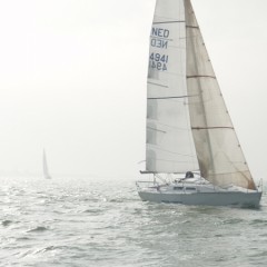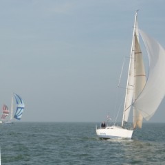 De start was op 22 september, tussen 7 en tien uur, voor mij even na 8 uur. De wind was zwak en in de zuidhoek. Vóór mij allemaal spinakers. Ik moest dat dus ook maar doen. Bij het hijsen bleek direct dat ik een schoothoek en tophoek verwisseld had… Onder het toeziend oog van een deel van het veld dit detail verholpen. Daarna was het heerlijk spinakeren naar Hoorn. Op tijd de spi eraf. Het lukte mij niet deze geheel droog aan dek te krijgen. Vanaf de Nek hoog aan de wind richting Lelystad. Na een uurtje verzeilde ik in de lokale doldrums. Over de afstand van misschien 12 NM deed ik bijna 8 uur!! Rampzalig!. Een extreme oefening in geduld. Daarna met een minimaal briesje, het was inmiddels donker, naar Durgerdam. Nog vóór twaalf uur ’s nachts voor anker en slapen maar. De verplichte ankertijd van minimaal 6 uur had ik dan al vast ingevuld. Na een bezoek aan de douche bij de vereniging fris de volgende morgen op weg naar IJmuiden. Bij de Schellingwouder brug kreeg ik gezelschap van de Viento, een 31 voet Elan met een nogal lang aangebouwd eendenplatform. Hij bleef voor het grootste gedeelte van de wedstrijd in mijn buurt.