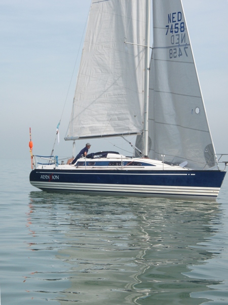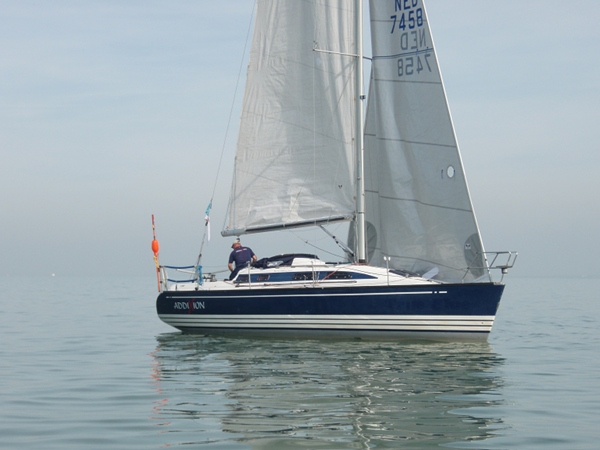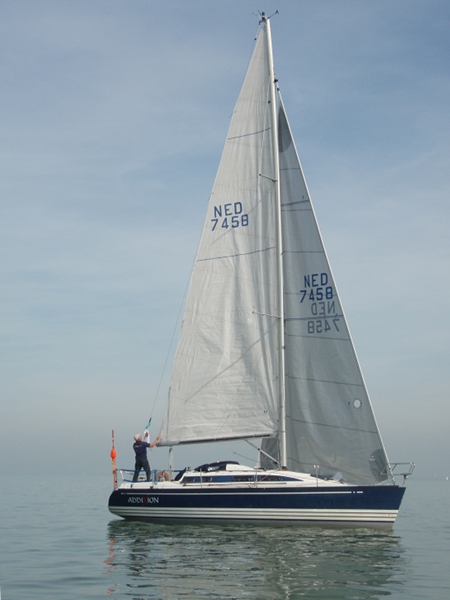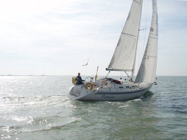 Vroeg opgestaan (5.30 uur), want ik wil, mede gezien de matige windverwachting, op tijd starten. Bij vertrek complimenteert mijn buurman – de schipper van de “Manana” – mij met mijn boot. Hij heeft al gauw gezien dat mijn boot is ingericht op solozeilen (keerfok, German sheeting, etcetera).Ik licht hem toe uit dat die inrichting met mijn gezinsssituatie – we hebben een matroosje van vijf jaar oud – heel praktisch is.
