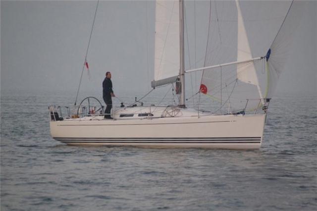 Late the second night we decided to stop in the fishing village of Urk, and managed (barely) to negotiate the narrow harbor channel using the chartplotter and sighting unlit buoys. Sleep came quickly, and still in darkness we made or way back to a lighted marker buoy to restart. As the sun rose a much appreciated light breeze also came up; we hoisted the spinnaker and set course for the next mark. As we passed the buoy we saw it had the incorrect number, hastily dropped the spinnaker, and sailed back toward the proper buoy while frentically getting the spinnaker ready to re-hoist. A classic lesson relearned — always trust a current paper chart over electronic aides. We also experienced a major failure at this juncture. When bounding back to the cockpit after dropping the spinnaker pole, the two-day-dirty jeans split up one leg to the crotch. As we found out later in the day, these were the only trousers in the seabag, the others no doubt neatly folded at home on the dresser. And for those of you who participated and made it this far in the narrative, this solves the mystery of why after finishing I was still wearing the stifling hot foul weather trousers.