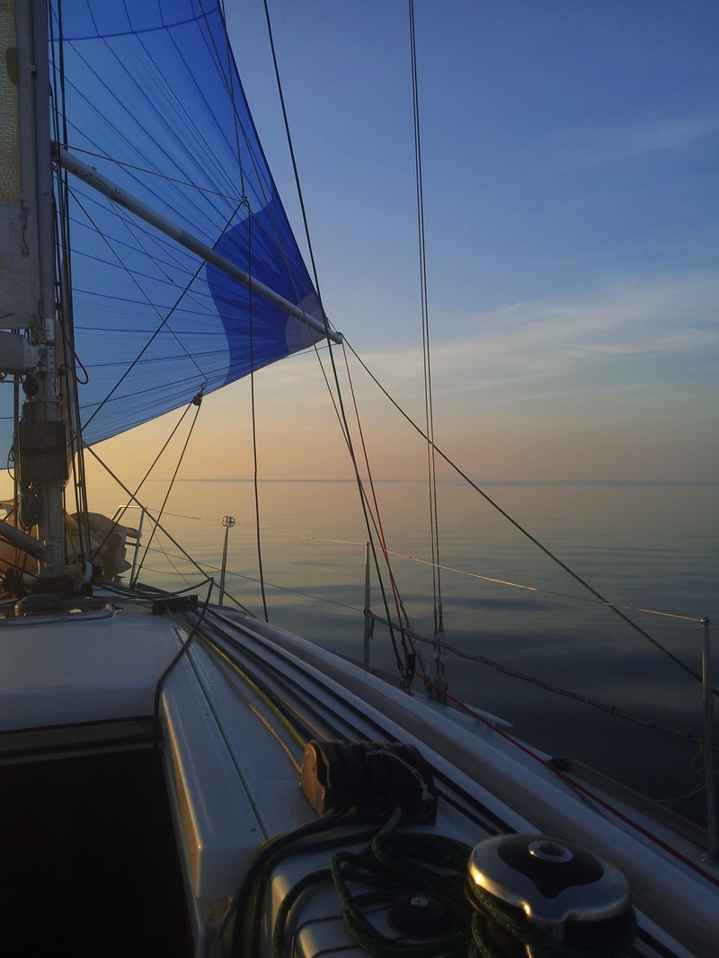 Maar vroeg naar de kooi, redelijk onrustig geslapen en om 6 uur opgestaan. Want vroeg varen is wel wenselijk met dit mooie weer. Bij zonsopkomst en zonsondergang is er wind. Overdag “vreet” de zon de wind op.