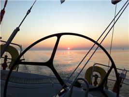 Na mijn eerste echte rust, op Vlieland, vaar ik met instromend water de Waddenzee weer op. Weer is de avond mooi en wordt het vroeg donker. Vlak bij Harlingen maak ik lange slagen op de stroom langs de Pollendam in het donker. Hoewel de lichten duidelijk zijn is het kikken om zo ver mogelijk naar de dam te varen en toch zeker te zijn dat ik die niet raak. In Harlingen moet ik drie uur wachten tot de Waddenzee weer leeg stroomt en me door de Boontjes kan meevoeren naar Kornwerderzand. Het hele rak is precies bezeild, scherp aan de wind. Ik vaar van boeienpoort naar boeienpoort met de stoere Orion aan mijn bakboordzijde.