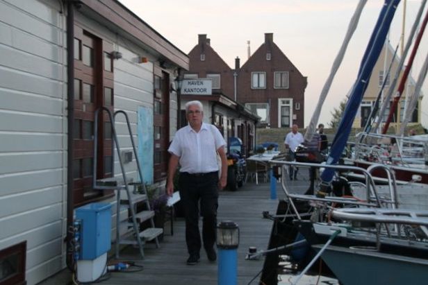 Tijdens het palaver kregen we de laatste informatie door. Voorzitter Martin Selles is kort en bondig met name toen hij nog iets over ratings zei. Het gebruik van de trackers werd goed uitgelegd maar kon eigenlijk niet misgaan. Gewoon in de lader laten zitten en de gegevens worden automatisch verzonden. Van de zeilers wordt verwacht dat zij boeien dicht bij (15 mtr) passeren, alles wordt via de tracker gezien. Complimenten aan het bestuur, aan de voorbereiding kon het niet liggen.