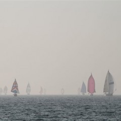 Ik start om ongeveer 8:00 uur en kan meteen de spinaker zetten. Het zicht is wat verbeterd en ik kijk tegen de achterkant van het deelnemersveld aan. Hoewel ik zo nu en dan een deelnemer met een hogere SW inhaal, kom ik niet echt dichterbij de massa.