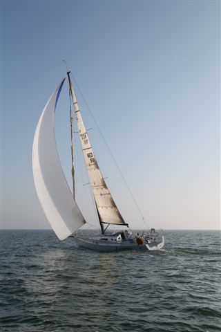 Eerste stuk gaat prima tot voor het Molengat tussen Texel en de Razende Bol. Opeens geen wind meer, 0 snelheid, maar wel 3 knopen snelheid over de grond. Waar spoel ik heen , het Molengat in of erlangs naar Engeland? Met veel moeite krijg ik iets snelheid richting het noorden en pers ik me net het Molengat in en spoel er doorheen. Pfff.. Lijkt simpel maar de hectiek dan aan boord is gigantisch, gennaker eraf, genua erop, waar drijf ik heen , wat is mijn snelheid ,alles in de knoop, rust rust rust!, de stuurautomaat er even op, snel naar binnen op de computer kijken of het goed gaat,op het scherm: shit, een onverlichte boei recht voor, vlug naar buiten automaat eraf en daar komt het donkere gevaar..oei, net eromheen, pff. Kortom dit is het overleven met weinig wind, na zoveel uur varen, oververhit in je zeilpak , even helemaal gesloopt.