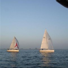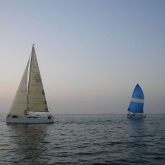 Woensdag rond 7:45 uur lag ik bij de startlijn. De wind was zuid-oost, dus de spi ging erop en genieten maar. Na het paard was een gijp net niet nodig. Na de MN1-GZ2 bij Volendam richting de NEK-boei (Sport E) bij Hoorn. Vlak voor de boei de spi eraf en opkruisen naar de OVD3 bij Lelystad. De wind was zo vriendelijk de krimpen en door te zetten naar oostnoordoost. Het rak naar de OVD3 werd op het laatst gewoon een spinakerrak. De kopgroep heeft daadwerkelijk moeten kruisen. Hier een foto die bewijst dat solozeilers elkaar altijd weer opzoeken.