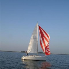 Om 14.55 mag het anker omhoog. Ik wil graag verder. Hoe blij ben ik als het tegen drieën af en toe een vlaagje geeft. Om vijf over drie lijkt het een beetje te waaien. Het zal niet hard gaan, maar anders loop ik het risico dat ik Durgerdam niet haal voor zondag ochtend 12 uur. Ik besluit te gaan. Na twee uur stoeien met de spinaker, bij weinig wind zakt dat ding in elkaar als een soufflé zodra je de ovendeur te vroeg open doet, ligt de Sport E nog zichtbaar dicht bij. Het stronkje van de witlof dat ik voor op het schip overboord gooi is pas na 30 seconde bij het achter schip. 9 meter in 30 seconde! Op de GPS blijk ik in die twee uur 1 mijl verplaatst te zijn. Ik bel naar huis omdat ik overweeg om af te haken, de motor te starten en naar huis te varen. “Wat voor kwaliteiten heb je nodig in een windstilte” vraag ik met lichte wanhoop aan mijn zoon, als ik even naar huis bel om te overleggen? “Geduld”, zegt hij spontaan. Mijn zwakke plek en ik besluit door te gaan. Om 22 uur ben ik toch maar weer een boei verder dankzij die prachtige spi van vriend Bart. Wat kan ik toch blij worden van kleine spontane dingen die anderen zomaar voor me doen!