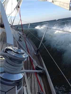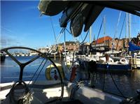 Met oost 5-‐6 bft heeft de boot er zaterdag lekker de sokken in. Tijdens het niet bezeilde rak naar Urk zet de wind nog wat meer door. Na de sluis in Lelystad wissel ik de genua voor de werkfok en begin rond 20:00 uur aan de laatste rakken naar de finish. Aanvankelijk heb ik het idee dat ik te weinig zeil voer, maar snel daarna blijkt het voldoende te zijn. De boot gaat er met een mooie hekgolf doorheen. Na Volendam moet ik een stukje aan de wind. Ik geniet intens van de Contessa, die met een gangboord in het water en het nodige water over dek blijft doorlopen.